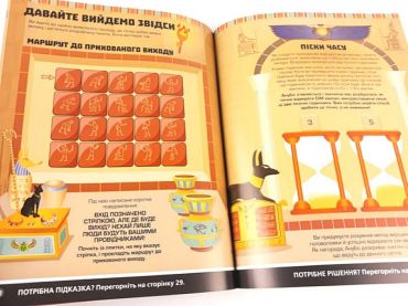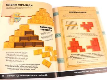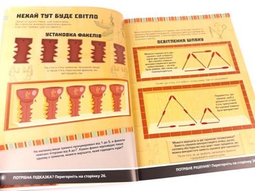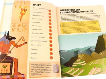 Особлива книга, яка містить найрізноманітніші загадки та головоломки, об'єднані однією темою - перебуванням у піраміді. Розвиває логіку, просторове мислення, кмітливість, крута у плані пізнання теми "Піраміди"!