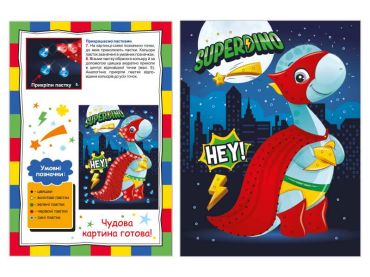 Сучасний набір для творчості, що знайомить із трендовим рукоділлям стрінг-артом! Це створення об’ємних картин за допомогою цвяхів і ниток. Розмалюємо червоними нитками плащ динозавра-супергероя і декоруємо паєтками!
