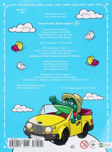 Дитяча розмальовка ''Веселі звірята'' серії ''Каляки-маляки'' це зручний та веселий спосіб провести час з малечею та розвинути творчість, уяву та координацію.
