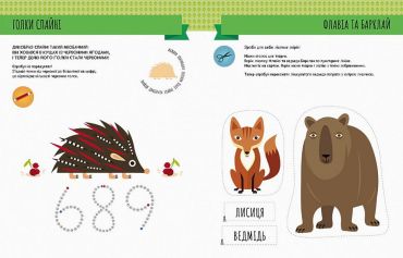 Книжку створено за популярною методикою Монтесорі. Вона містить ігри та вправи, спрямовані на розвинення дитячих пізнавальних здібностей на основі вільного вибору. Діти навчаються розпізнавати характеристики різних сільськогосподарських та лісових тварин, садових рослин в ігровій формі, малюючи по лініях, розфарбовуючи, вирізаючи картинки та використовуючи наліпки.