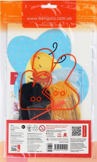 Набір містить: покрокову інструкцію, акрилові нитки, дитячу пластикову голку для вишивання, шаблон (картку з отворами).