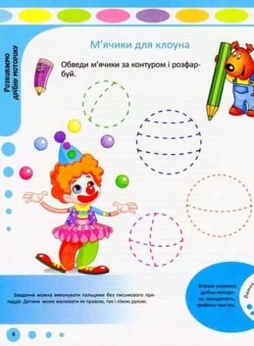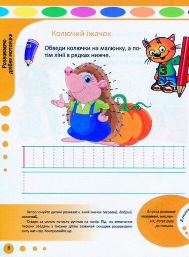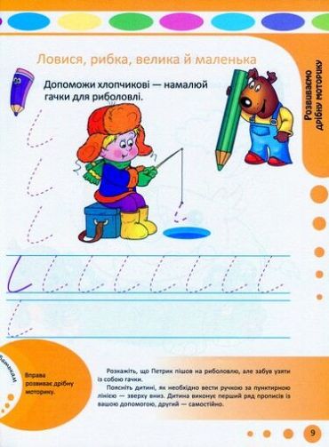 Розвиток дрібної моторики рук дуже важливий для дітей дошкільного віку, оскільки в головному мозку людини центри, що відповідають за мовлення і рухи пальців рук, розташовані дуже близько.Коли стимулюється дрібна моторика й активізуються відповідні відділи мозку, у цей процес залучаються й сусідні зони, що відповідають за мовлення. Щоб зацікавити дитину й допомогти їй опанувати нову інформацію, варто перетворити навчання на гру. До цієї книжки увійшли вправи, ігри та завдання на розвиток дрібної моторики, які стануть у пригоді як у дитячому садочку, так і вдома.