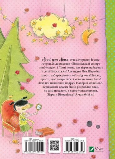 Лінні фон Лінкс стає акторкою! Її клас готується до вистави «Білосніжка й семеро прибульців», і Лінні певна, що зіграє найкращу у світі Білосніжку! Але нудна Яна Штребер просто забирає роль у неї з-під носа! Звісно, про те, щоб змиритися, і мови не може бути! Завдяки найліпшій подрузі Ізадорі й малиново-вершковим кексам Лінні розробляє план, як усім показати, з якого тіста зліплена. Зіграти Білосніжку? А чом би й ні!