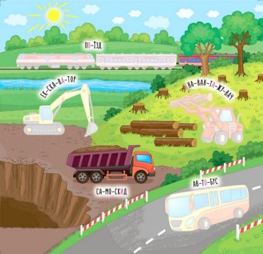 Книга познайомить малюка з транспортними засобами, а також різноманітною будівельною технікою.