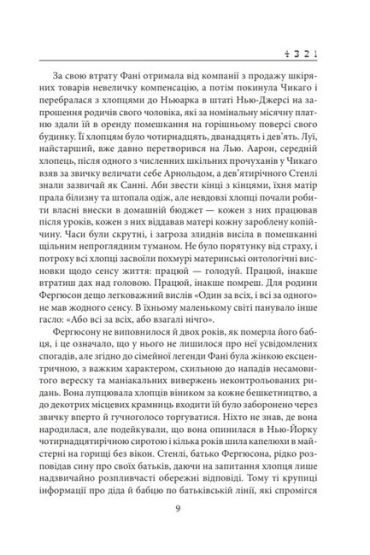 Остера не дарма називають класиком постмодерну: під одну обкладинку він помістив не одну історію, а чотири. В якийсь момент сюжет поділяється на чотири великі гілки, кожна з яких відповідає одному з можливих життів головного героя - Арчі Фергюсона. І у кожному зі своїх чотирьох життів він проходить через всі етапи дорослішання: переживає зміни відносин з родиною і друзями, намагається облаштувати своє особисте життя, бере участь у подіях, пов'язаних з культурою, спортом і політикою 1950-1960-х років, на які припала молодість героїв і які стали такими важливими для Америки. Оскільки кожному з Фергюсонів відповідає свій шар культури, тому охоплення виходить максимально широким.