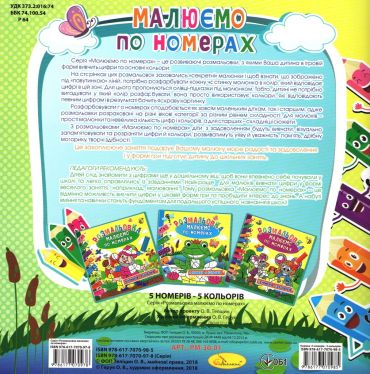 З розмальовками "малюємо по номерах" діти з задоволенням будуть вивчати, візуально є ятовувати та розрізняти цифри й кольори, розвиватимуть уяву та уважність, пам'ять, дрібну моторику та творчі здібності.