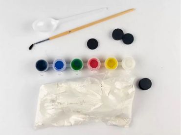 До складу набору входить: гіпс, фарби, пензлик, форма з фігурками, магніти.