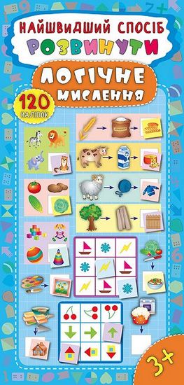 Із цією книгою ваша дитина легко та швидко навчиться встановлювати логічні зв’язки між предметами, добирати узагальнювальні назви, знаходити загальні або протилежні за змістом ознаки, а також потренується розв’язувати прості логічні задачі за допомогою наліпок.