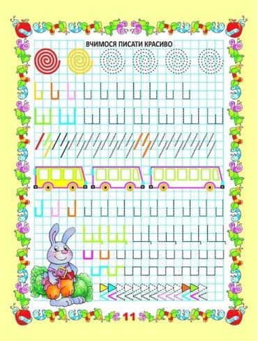 Розпочавши з пальчикових ігор і вивчення віршиків, малюк поволі перейде до опанування складніших навичок: навчиться рахувати, обводити по пунктиру геометричні фігури, вивчить абетку. Коли ж пройде цей етап, зможе потренуватися писати по пунктиру літери й цифри, а також малювати різні предмети за зразком.