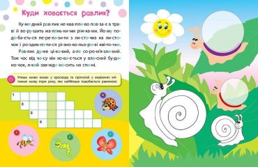Ця книга познайомить дітлахів із симпатичними тваринками: жабеням, черепашкою, равликом, удавом, рибкою, курчам та їжачком. Кумедні історії про неймовірні пригоди персонажів не лише поліпшать настрій і заохотять до фантазування, а й допоможуть повправлятися в читанні по складах. Працюючи з книгою, малеча потренується робити аплікації: вирізати й наклеювати на малюнок деталі, яких бракує. Також діти зможуть удосконалити своє вміння розфарбовувати малюнки й наводити пунктирні лінії. Крім того, кожна книга серії містить цікаві завдання, що сприятимуть розвитку логічного мислення й мовлення, навичок лічби, дрібної моторики кисті, уваги й уяви.