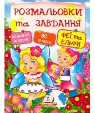 Розмальовки та завдання. Феї та ельфи ( 64 сторінки + 4 листи з наліпками) 42940