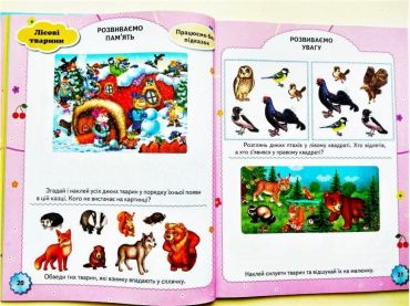 У ній 60 сторінок з тестовими, розвивальними завданнями та іграми, плюс 4 сторінки зі 168 наліпками до них.