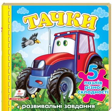 У нашій книжці представлені пазли улюблених тачок дітвори: автобуси, вантажівки, трактори, тролейбусів і теплохода. Це ті незамінні помічники, які перевозять численних пасажирів і важезні вантажі, орють і засівають землю. А величезний трудяга-теплохід — ось де справжня сила! — транспортує до далеких країн не лише людей разом з їхнім багажем, а й навіть автомобілі.