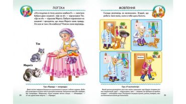 Збірка містить завдання з логіки, мислення, уваги, пам'яті, мовлення, дрібної моторики рук. Крім того, у ній є веселі ігри, прописи, друдли (малюнки-пазли), вправи для дихальної та артикуляційної гімнастики, зарядка для непосидьків і поради батькам.