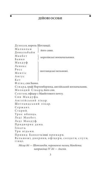 У п’єсі «Макбет» Вільям Шекспір зображує небезпеку надмірного жадання влади та зради друзів. Шотландському королю Макбету відьми віщують високий статус і вітають як майбутнього короля. Він вірить у пророцтво, але його нестримне бажання влади призводить до низки трагічних подій.
