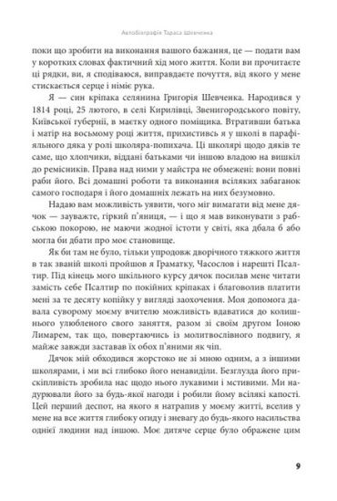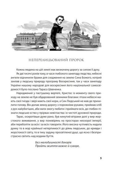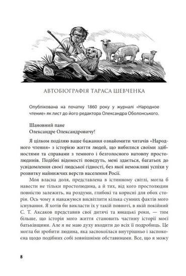 У книзі вміщено «Автобіографію» Тараса Шевченка і три найбільш знакові твори поета, написані в різний період життя, у яких глибинно розкривається тема вибору Людини. Вибору між вільним злетом духу та ілюзією дрібного земного благополуччя.