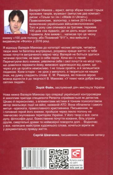 Валерій Макеєв – юрист, автор збірки поезій і трьох прозових творів, музикант (випустив два компакт-диски: «Тільки ти і я» і «Made in Ukrain»). Правозахисник, волонтер, з липня 2014-го сприяє визволенню українських військовополонених. Того ж року сам опинився за гратами, пережив 100 днів «на підвалі», де не діють жодні закони і правила. Але вижив і... написав про це чесну книжку «100 днів полону, або Позивний “911”», яка вийшла у видавництві «Фоліо» у 2016 році.