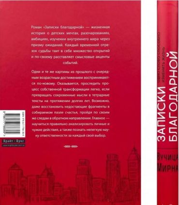 Роман «Записки благодарной» — жизненная история о детских мечтах, разочарованиях, амбициях, изучении внутреннего мира через призму ожиданий. Каждый временной отрезок судьбы таит в себе множество открытий и по-своему расставляет смысловые акценты событий.