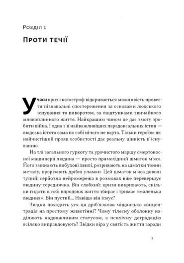 Автор переосмислює античний стоїцизм, кінізм та інші вчення, що стають дедалі кориснішими для сучасної людини, формують нинішніх воїнів. Через призму власного досвіду він розглядає, як досягнення стану автаркії допомагає не втрачати себе у вирі подій і зберігати твердість духу, коли все навколо змінюється.