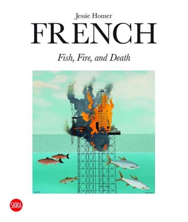 The paintings reproduced in Fire, Fish, and Death are a lyrical exploration of the fragility and beauty of existence, conveyed through soft brushstrokes and a vibrant palette. Often depicting death and destruction – which usually comes in the aftermath of fires – the artist consistently challenges the viewer through the use of striking imagery, such as large numbers of deceased fish in pristine water or funerals with heavily adorned coffins that draw attention away from the bereaved. Despite the artist's realistic representation of these scenes, they possess an otherworldly and surreal quality that transports the viewer outside of their present reality and creates a sense of disorientation and awe. Jessie Homer French, blessed with a poetic eye and a deft hand, reminds us of the transience of life, capturing the fleeting moments of existence in a way that is both haunting and idyllic.