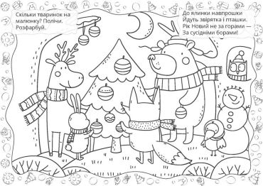Така різдвяна розмальовка зробить дозвілля дитини цікавим і корисним, адже містить чудові ілюстрації, які потрібно розфарбувати, гарні коротенькі віршики, які можна вивчити до свята, та 70 яскравих блискучих наліпок, якими можна прикрасити подарунки друзям, листівки рідним та інше.