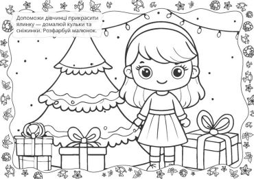 Така різдвяна розмальовка зробить дозвілля дитини цікавим і корисним, адже містить чудові ілюстрації, які потрібно розфарбувати, гарні коротенькі віршики, які можна вивчити до свята, та 70 яскравих блискучих наліпок, якими можна прикрасити подарунки друзям, листівки рідним та інше.