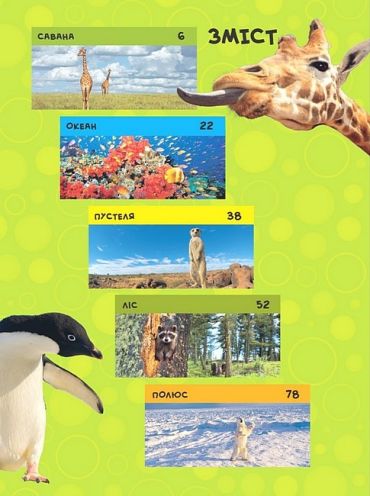 Легендарне товариство National Geographic запрошує маленьких читачів у дивовижний світ тварин! Діти дізнаються про те, як спілкуються дельфіни, чи рятує зебр від хижаків їхнє смугасте забарвлення, як знайти вхід у житло бобрів, чи люблять сурикати засмагати… Вони отримають відповіді на всі ці та багато інших неймовірних питань про мешканців лісів, саван, пустель, морів та полярних областей нашої планети. На юних дослідників чекають не тільки найцікавіші факти, викладені доступною та захоплюючою мовою, але й неповторні знімки від фотографів National Geographic!