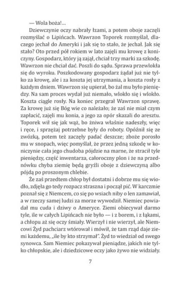 ...Zubozaly chlop Wawrzon Toporek razem ze swoja corka Marysia na statku wyrusza do Ameryki. Lecz zamiast basni czeka na niego wypelniona rozczarowaniem rzeczywistosc. Do edycji weszly rowniez opowiadania „Janko Muzykant” i „W krainie zlota”.