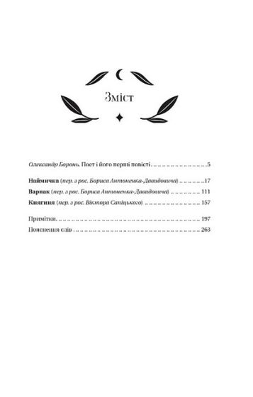 Зворушлива історія наймички, яка до кінця життя не могла зізнатися у своєму материнстві, відверта сповідь колишнього каторжника Кирила, моторошні сільські бувальщини та драматична доля княгині Катрусі — три перші Шевченкові повісті поновому розкривають нам світ людини першої половини ХІХ століття, її переживання, змагання, мрії та розчарування. Блискучі переклади українською мовою знаних майстрів слова Бориса Антоненка-Давидовича й Віктора Сапіцького ніби наближають Шевченка до нашого часу: його герої та героїні живуть, кохають, страждають і борються, як ми сьогодні.