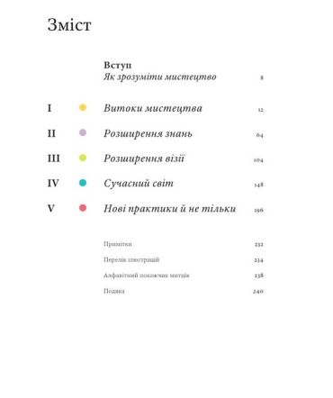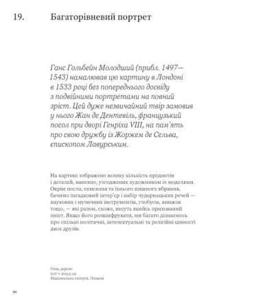 Історія мистецтва, сповнена складних правил і професійних термінів, нерідко відлякує від себе. Навіть досвідчені поціновувачі можуть ламати голову над таємницями художніх витворів. «Мистецтво без таємниць» пропонує новаторський підхід — захопливу наочну подорож, що принесе читачу багато відкриттів. Разом ми розберемо 50 важливих мистецьких творів і знайдемо те, з чого, власне, складається шедевр.