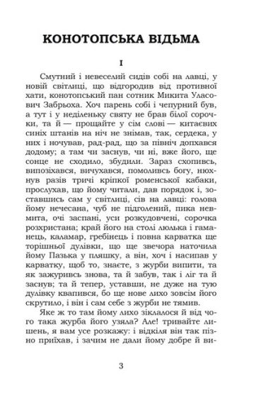 Григорій Федорович Квітка-Основ’яненко — український прозаїк, драматург, журналіст, літературний критик і культурно-громадський діяч, засновник художньої прози та жанру соціальнопобутової комедії в класичній українській літературі. Має почесне ім’я «батька української прози». Його повісті, сюжети яких розгортаються поза соціальними конфліктами, з ідеально-побожними героями, є типовим зразком українського сентименталізму. Дана збірка містить два твори автора — «Конотопська відьма» та «Маруся». «Конотопська відьма» — сатирично-фантастична повість, що розповідає про козацьку старшину, сотника славної конотопської сотні Микиту Уласовича Забрьоху, його писаря Прокопа Ригоровича Пістряка та відьму Явдоху Зубиху. «Маруся» — сентиментальнореалістична повість. Перший прозовий твір нової української літератури.