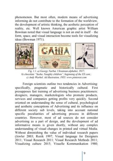 The author considers а poster in the context of modern Advertising design as a specific type of creative activity – the design process is presented as a synthesis of sociocultural, ideological, colour-graphic, and marketing aspects. The significant influence of art styles on Advertising graphics, the problems of visualization of advertising ideas are analyzed, and the arsenal of artistic and graphic tools combined with computer technologies is structured. Special attention is devoted to the associative perception of colour in advertising appeals and its semantic interpretations.