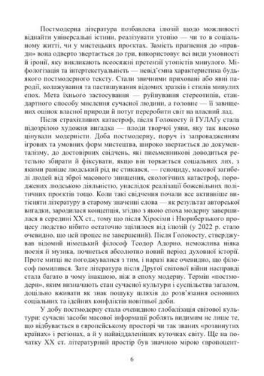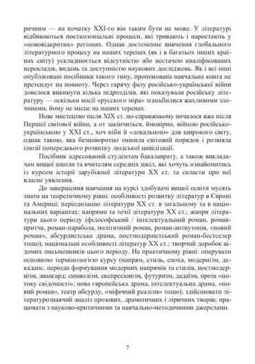 «Історія зарубіжної літератури ХХ століття» — завершення базового циклу курсів у підготовці філологів. Друга частина посібника — «Після модерну» — передбачає вивчення основних художніх явищ зарубіжної літератури від середини ХХ ст. до початку ХХІ ст. Предмет вивчення — сутнісні риси літературного процесу постмодерної доби, ідейно-тематичні аспекти та поетика найпоказовіших творів зарубіжної літератури у цей період. Основний об’єкт вивчення — літературний процес від повоєнного періоду до 2000-х років, формування та розвиток постмодерних літературних феноменів (театр абсурду, «новий роман», «проза чорного гумору» тощо), творчість знакових представників літературного процесу, аналіз їхніх творів у загальному культурно-філософському та національному контекстах, жанрово-стильові риси творів, основні тенденції образотворення в постмодерній художній літературі та індивідуальні авторські стилі. Курс має практичне спрямування — розвивати навики аналізу текстів, спираючись на контекст культурно-історичної епохи.