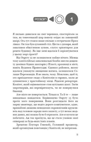 Катніс Евердін - дівчина, яка палає, - вижила у моторошній Почвертві Приборкання. Прийшовши до тями вона дізнається, що її рідний Округ зруйновано, Ґейлу і її сім’ї пощастило врятуватися, проте Піту схопили і тримають у Капітолії. Округ 13 існує, ба більше, він очолив повстання і планує повалити Капітолій. Здається, до ретельно розроблених планів доклали руку всі - крім Катніс. А втім, успіх повстання залежить від її готовності стати символом, взяти на себе відповідальність за незліченну кількість жертв і змінити історію майбутнього Панему.