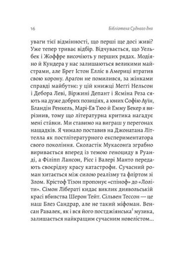 У цій книжці Фредерік Беґбедер створює власний літературний пантеон із п’ятдесяти головних книг свого життя. Тут поряд із Філіпом Ротом можна зустріти Сімону де Бовуар, а поруч із Томасом Манном — Андрія Куркова. Це не просто черговий топ найкращих книжок, це справжній маніфест літератури в її найсвітлішій і найтемнішій формі водночас.