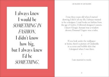 Celebrated for his uniquely radical aesthetic, McQueen has captured the public’s imagination as few other fashion designers have before or since. Like his designs, McQueen was de ant in his opinions. His quotes on creativity, “You’ve got to know the rules to break them. That’s what I’m here for, to demolish the rules but to keep the tradition”; and women, “I design clothes because I don’t want women to look all innocent and naive. . . . I want people to be afraid of the women I dress”; make this a thoroughly thought-provoking book. Featuring specially commissioned illustrations, this is the perfect gift for fans of fashion and of McQueen, capturing the sharp wit and unbridled spirit of a true visionary.