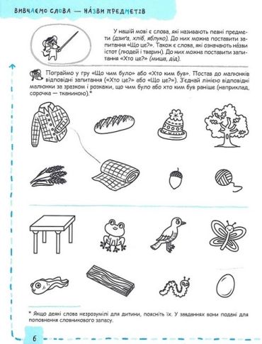 Унікальний за змістом і методичним наповненням робочий зошит — стильний та сучасний, зроблений з любов’ю та знанням своєї справи провідними вітчизняними фахівцями. Зошит має на меті сформувати у дітей шостого-сьомого року життя під час індивідуальних та групових занять мовну і мовленнєву компетентність, збагатити й розвинути словниковий запас, зв’язне мовлення, культуру спілкування тощо.
