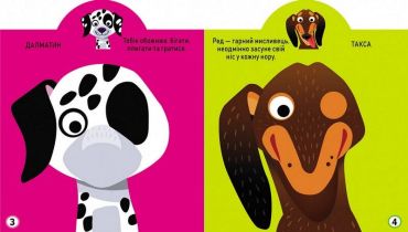 Чиї це кумеднi носики, оченята й вушка? Вiдгадай-но, кого зображено на малюнку! Допоможи песикам повернути те, що вони втратили. Використовуй для цього налiпки.