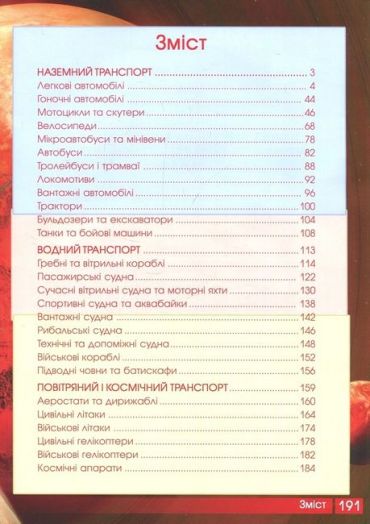 У книзі пропонується популярний технічний опис практично всіх існуючих транспортних засобів: від "вогненного воза XVIII ст. до суперкарів XXI ст., від давньоєгипетського папірусного човна до сучасного круїзного лайнера, від аеростата до "літаючого крила" на сонячних батареях. Цікаві, а часом навіть курйозні факти розширять уявлення читача про розвиток засобів пересування.