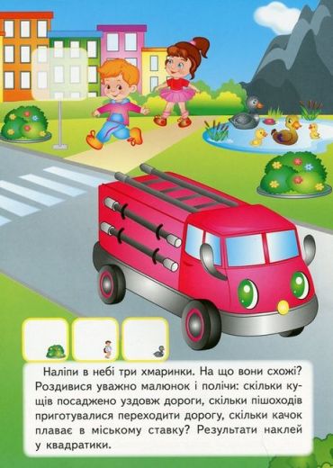 Що цього разу пропонує своїм маленьким читачам видавництво «Пегас»?Просто погуляти містом!З книжкою? Ні, друзі, — у книжці! Ось так, прямісінько в книжці, й гулятимемо! Нас чекає весела і надзвичайно захоплива прогулянка Уявіть, ми самі будемо встановлювати дорожні знаки, «вішати» над містом хмарки, «розміщувати» кущі уздовж шляху. Дорогою буде кілька зупинок. Але тільки для того, щоб досхочу побавитися. Малюк сам, своїми руками облаштовуватиме і прикрашатиме кожну зупинку за допомогою тематичних наліпок. Їх у цій книжечці — аж 61!