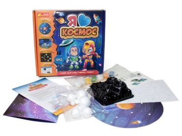 Набір для креативних розваг. 4 в 1 коробці! Упакування з 3D тисненням! Космос - це щось неймовірне, незвідане і неповторне! Запрошуємо познайомитися з кожним космічним "жителем" ближче, створити свою Сонячну систему, місячний кратер, зірочки, що світяться в темряві. Набір містить все необхідне для креативних розваг.