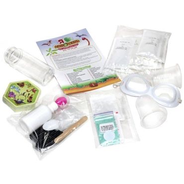 картки для гри «Хто швидше», пластикова пляшка, шипуча таблетка, харчовий барвник (червоний), олію-основа, дерев’яна паличка, зелений перламутровий пігмент, гліцерин, стаканчики, пластикова ложечка, мірний стаканчик, пластилін, оцет, харчова сода, яйце динозавра, захисні рукавички, захисні окуляри.