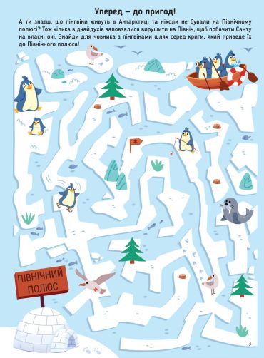 В цій книзі зібрані найцікавіші лабіринти про Новий рік та Різдво! Підказати Санті правильний шлях чи допомогти ельфам з підготовкою до Різдва? Знайти загублені речі та врятувати свято? Легко! Аж 20 лабіринтів чекають на малечу у цій книжці. Вони допоможуть дитині поринути в чарівну атмосферу свята, цікаво провести час та розвинути увагу і логіку.