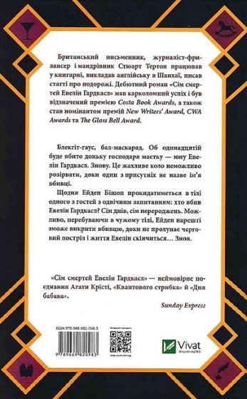 Блекгіт-гаус, бал-маскарад. Об одинадцятій буде вбито доньку господаря маєтку — юну Евелін Гардкасл. Знову. Цей жахливий цикл неможливо розірвати, доки один з присутніх не назве ім’я вбивці.Щодня Ейден Бішоп прокидатиметься в тілі одного з гостей з одвічним запитанням: хто вбив Евелін Гардкасл? Сім днів, сім перероджень. Можливо, перебуваючи в чужому тілі, Ейден нарешті зможе викрити вбивцю, доки не пролунає черговий постріл і життя Евелін скінчиться… Знов.