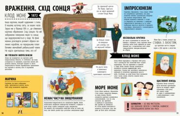 Ти дізнаєшся їхню історію та дещо про митців, які їх витворили. Хтозна, можливо, прочитавши цю книгу, ти й сам зажадаєш стати митцем?.. Тож одягайся зручно, хапай палітру — і гайда в дорогу! Твій провідник кішка Міна вже чекає!