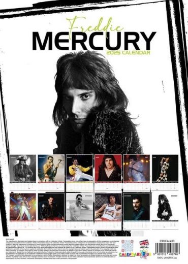 Get inspired by this beautiful spiral-bound Freddie Mercury A3 Calendar for 2025, from renowned brand Calendars R Us. Made from high-quality glossy paper, this calendar starts in January 2025 and runs through December 2025, with each month featuring a large, stunning photo and that month?s key dates. The texts on the calendar are in English, giving this calendar an international touch.