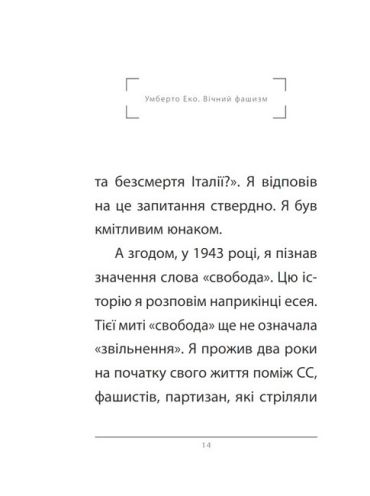 В есеї «Вічний фашизм» (1995 р.), важливому творі в доробку У. Еко, письменник і мислитель виокремлює та аналізує 14 ознак, які, на його думку, характерні для фашизму, зокрема в його нових формах і проявах. Ці ознаки іноді використовують для опису сучасного російського політичного режиму.