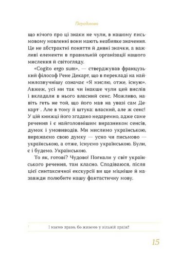Людству неймовірно пощастило: крім того, що вміє влучно називати всі предмети і явища навколишнього світу, воно також майстерно висловлює свої думки та впливає за допомогою мовлення на співрозмовника. А українцям пощастило ще більше, адже найголовніший інструмент, за допомогою якого ми самовиражаємося, передаємо інформацію та демонструємо почуття й емоції, — досконалий, філігранно вивершений і бездоганний. І хто ж це збирає стільки компліментів? Авжеж, речення — саме та мовна одиниця, в якій ми вербалізуємо свої думки й накопичуємо всю потрібну нашим співрозмовникам інформацію.