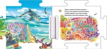 Сім чудових віршів про мешканців оекану. Вісім великих цупких та зручних для малюка пазлів? які складаються у картинку-панно розміром 65х30см. Й це ще не все, бо аналогів такій книзі в Україні немає.