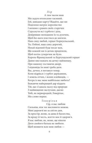 П’єсу «Король Лір» по праву вважають однією з найтрагічніших, у ній сімейні відносини тісно пов’язані з політичною проблематикою. Король Британії Лір, батько Гонерільї, Регани та Корделії, залишає молодшу доньку без спадщини. Цей вчинок призводить до фатальних наслідків, але нічого змінити вже неможливо. У видавництві «Фоліо» також вийшли друком інші твори В. Шекспіра: «Історичні хроніки», «Комедії та трагікомедії», «Трагедії», «Макбет», «Гамлет».